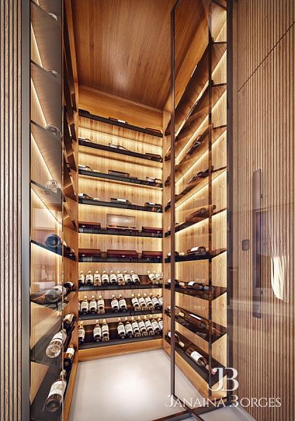 Adega com ponto de climatização e capac. para 216 garrafas;