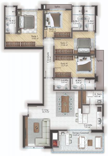 4 dormitórios (4 suítes)