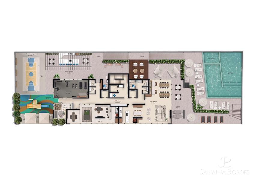 Academia• Brinquedoteca• Espaço gourmet• Piscina adulta• Piscina infantil• Sala de jogos• Salão de festas•quadra poliesportiva• playground •2 quiosques externos