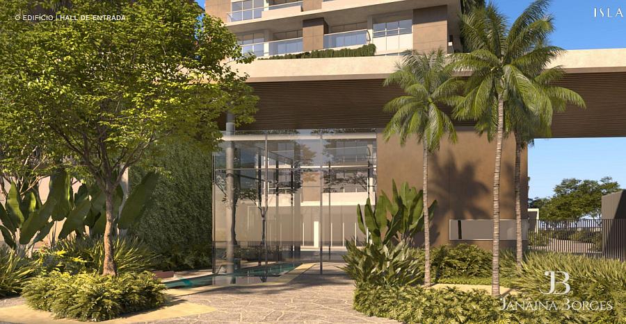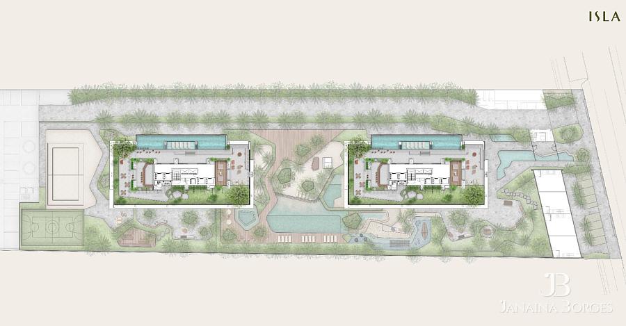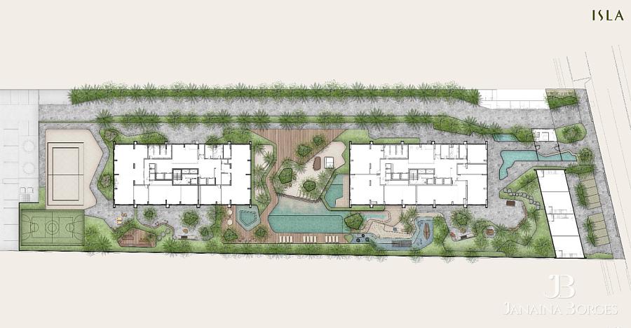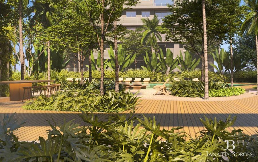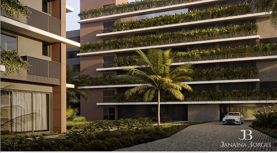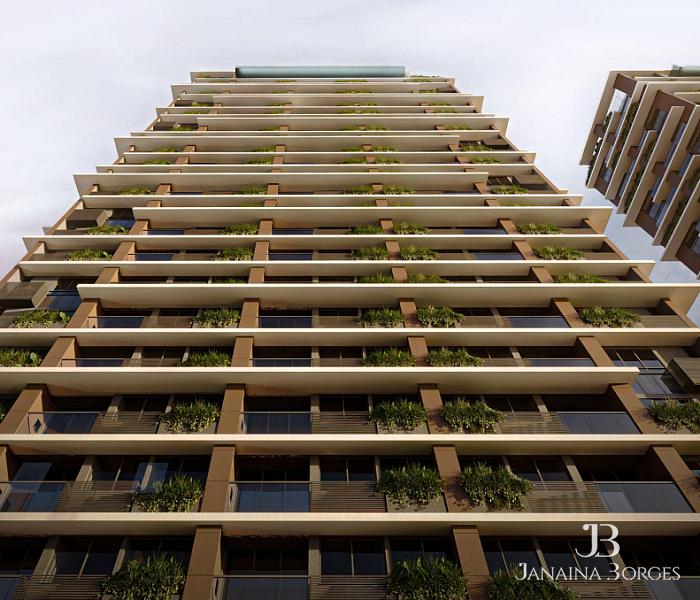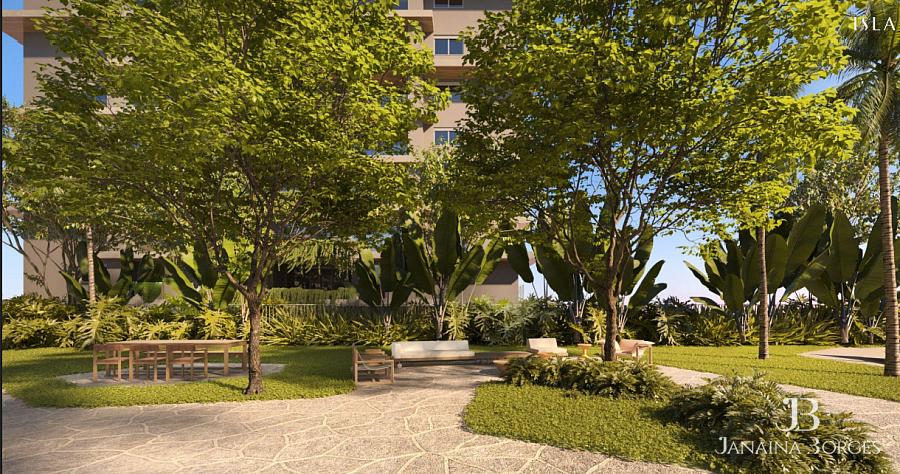 Condomínio residencial com arquitetura moderna, repleto de vegetação natural, elementos naturais como pedras, basalto polido em todo lazer, mármores e revestimento em madeira. Tudo em alta qualidade. Define-se como o luxo do contemporâneo