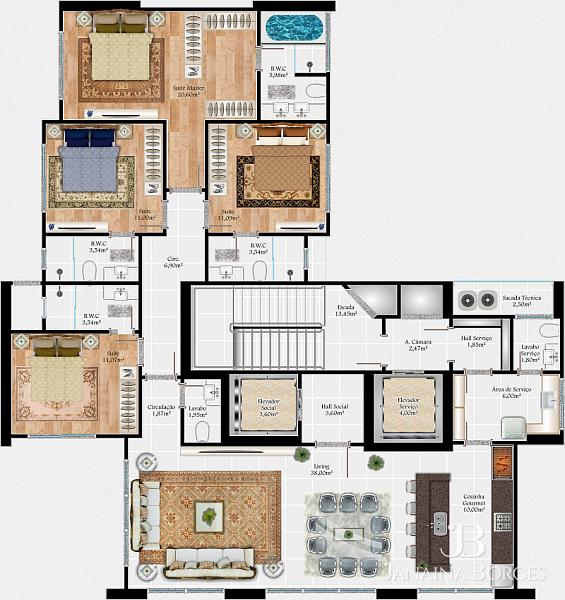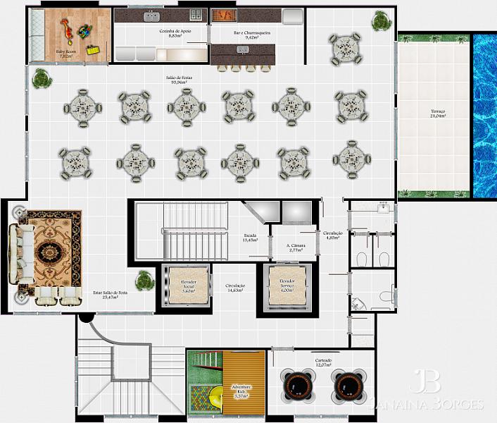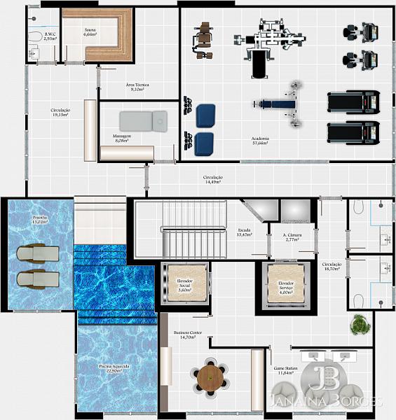 - Mais de 1.200m² de área de lazer distribuídos em 03 Pavimentos.
