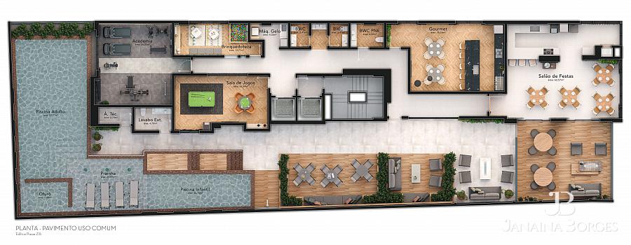 01 Pavimento de lazer mobiliado e decorado: