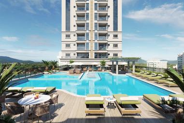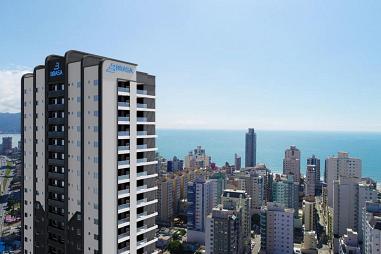 Localizado na MEIA PRAIA, há 350 metros da orla da praia