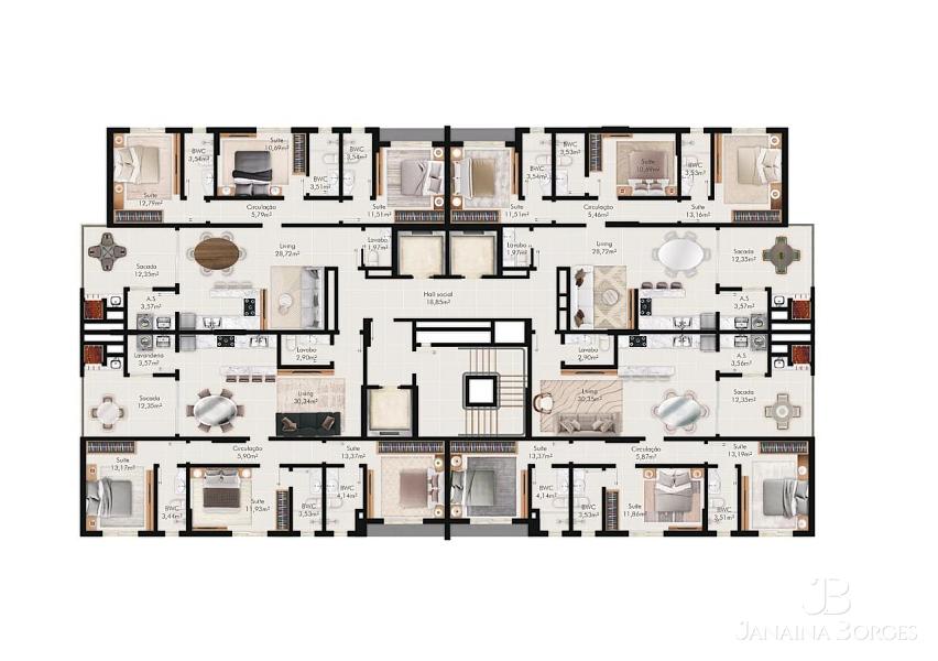 🔹 Tipo 03 - 3 suítes - 2 vagas - Área priv. 118.39m²