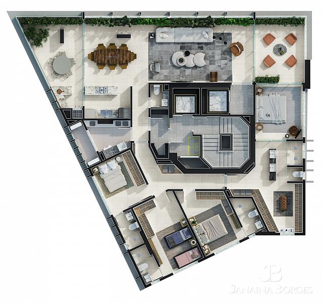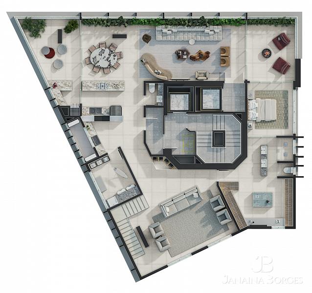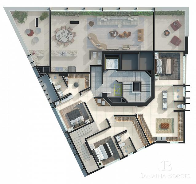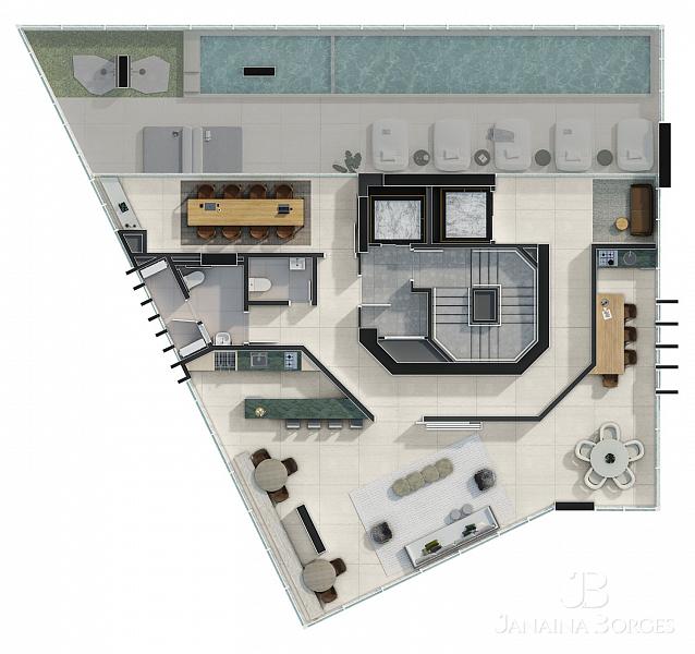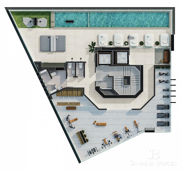 - Andares de lazer duplex no meio do edifício