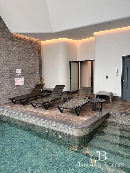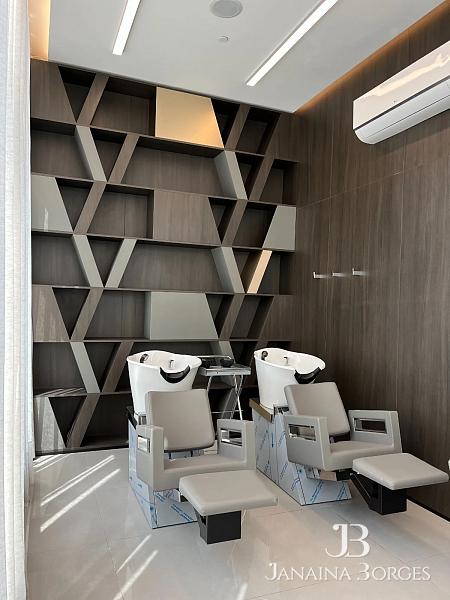 Infraestrutura para aspiração central, automação e ar-condicionado e aquecimento nos pisos do banheiro.