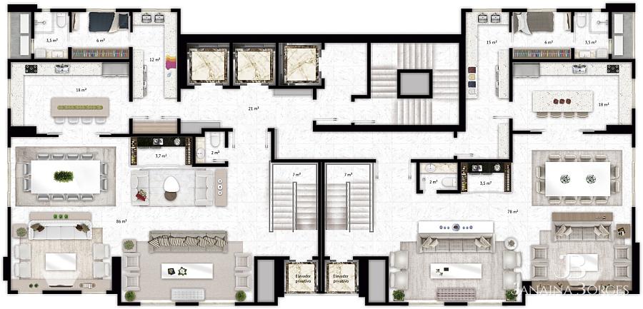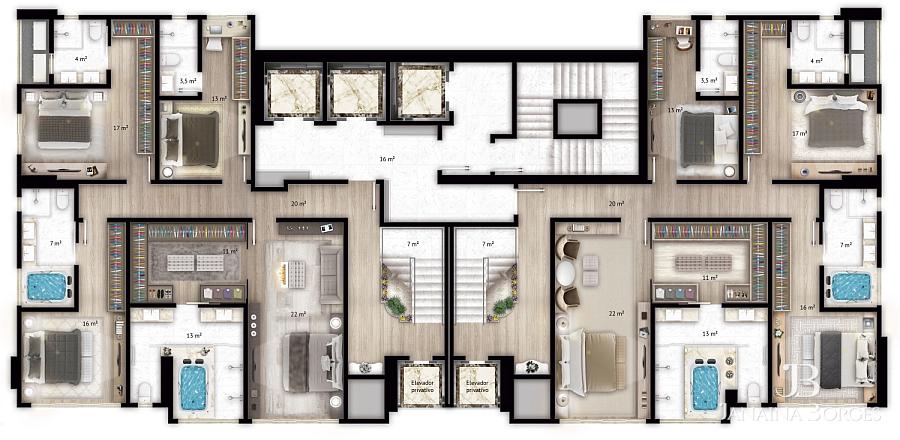 39º Andar (íntimo): 4 suítes sendo 2 master;